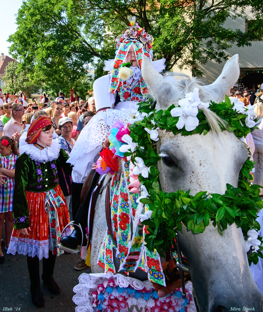 Při mnoha příležitostech můžete vidět naše nádherné slovácké kroje. Poklady, jež opatruje každá rodina jako oko v hlavě. V létě se v mnoha obcích konají hody. V Hluku na Svatého Vavřince (okolo 10.srpna).